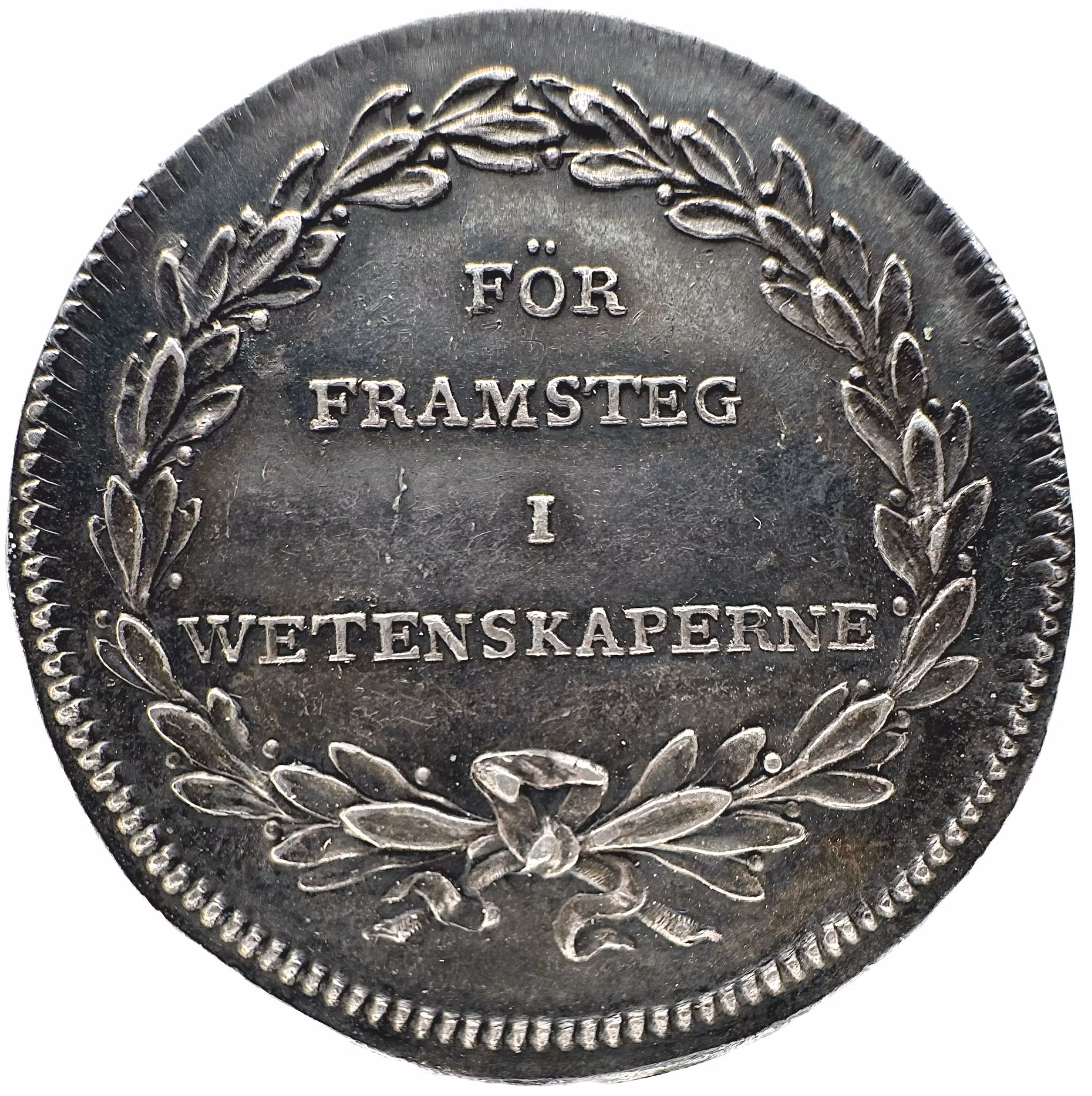 Åtsidan bär den hedrande inskriptionen "FÖR FRAMSTEG I WETENSKAPERNE" inom en lagerkrans. Detta visar att utmärkelsen inte gällde militär tapperhet, utan var en prestigefylld akademisk belöning för exceptionella studieresultat vid en av landets främsta läroanstalter.