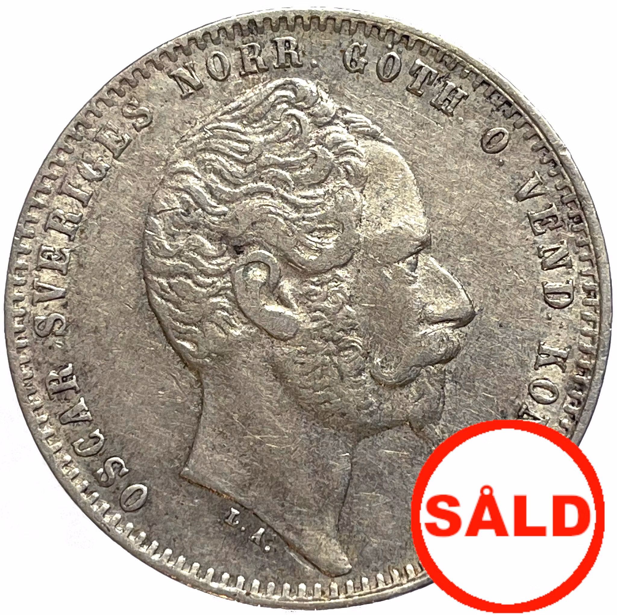 Oskar I - 1 Riksdaler riksmynt 1857 med kortare hakskägg Produkten är tyvärr slut i lager. :( Oskar I - 1 Riksdaler riksmynt 1857 med kortare hakskäggKvalitet 1+, SMB 51