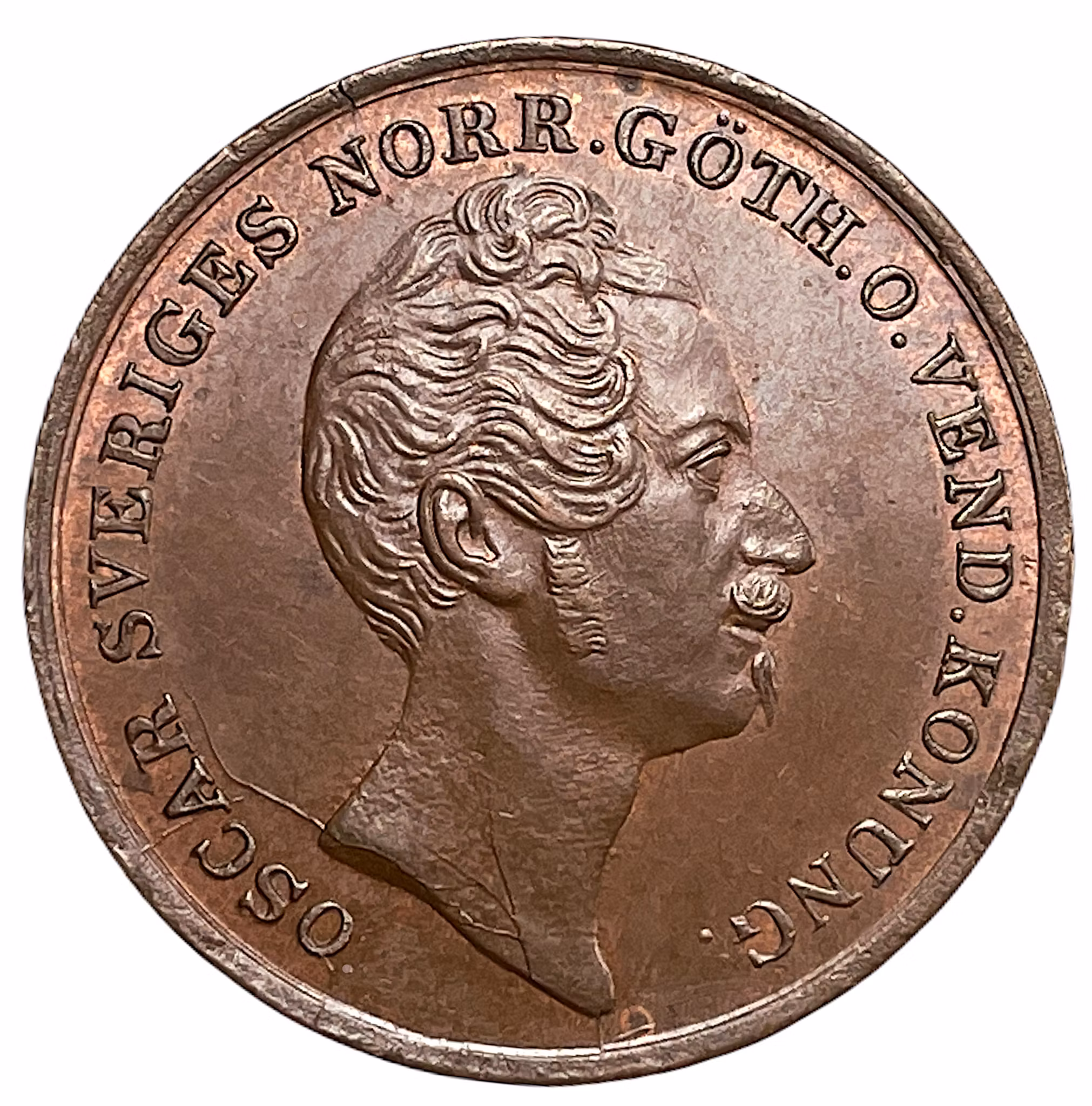 Oskar I - 1 Skilling Banco 1847 - Vackert rött ocirkulerat exemplar Produkten är tyvärr slut i lager. :( Oskar I - 1 Skilling Banco 1847 - Vackert rött ocirkulerat exemplarKvalitet cirka 01/0, SMB 94, 11.14g