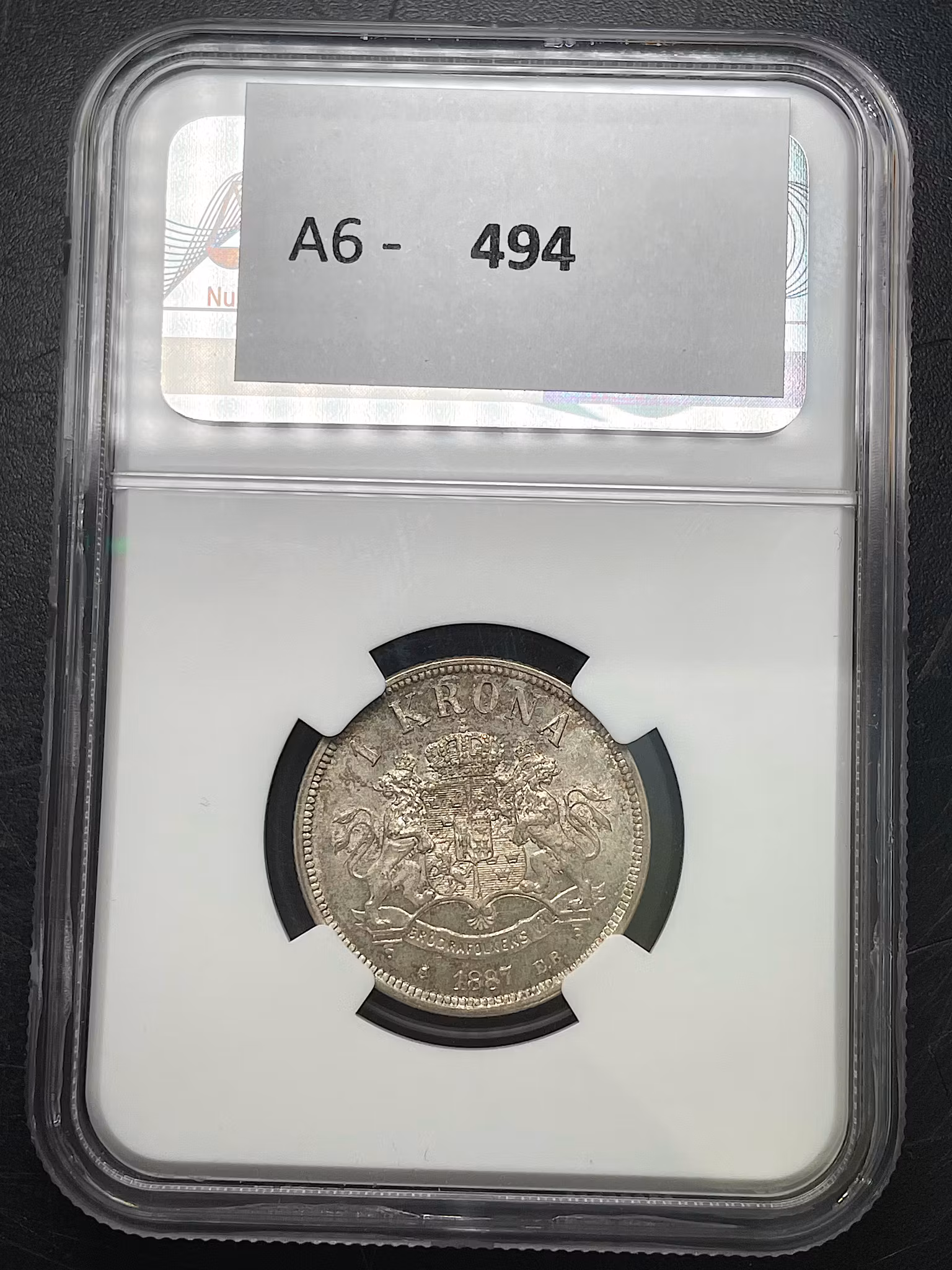 Oskar II - 1 Krona 1887 - Ett mycket vackert ocirkulerat exemplar - NGC MS63