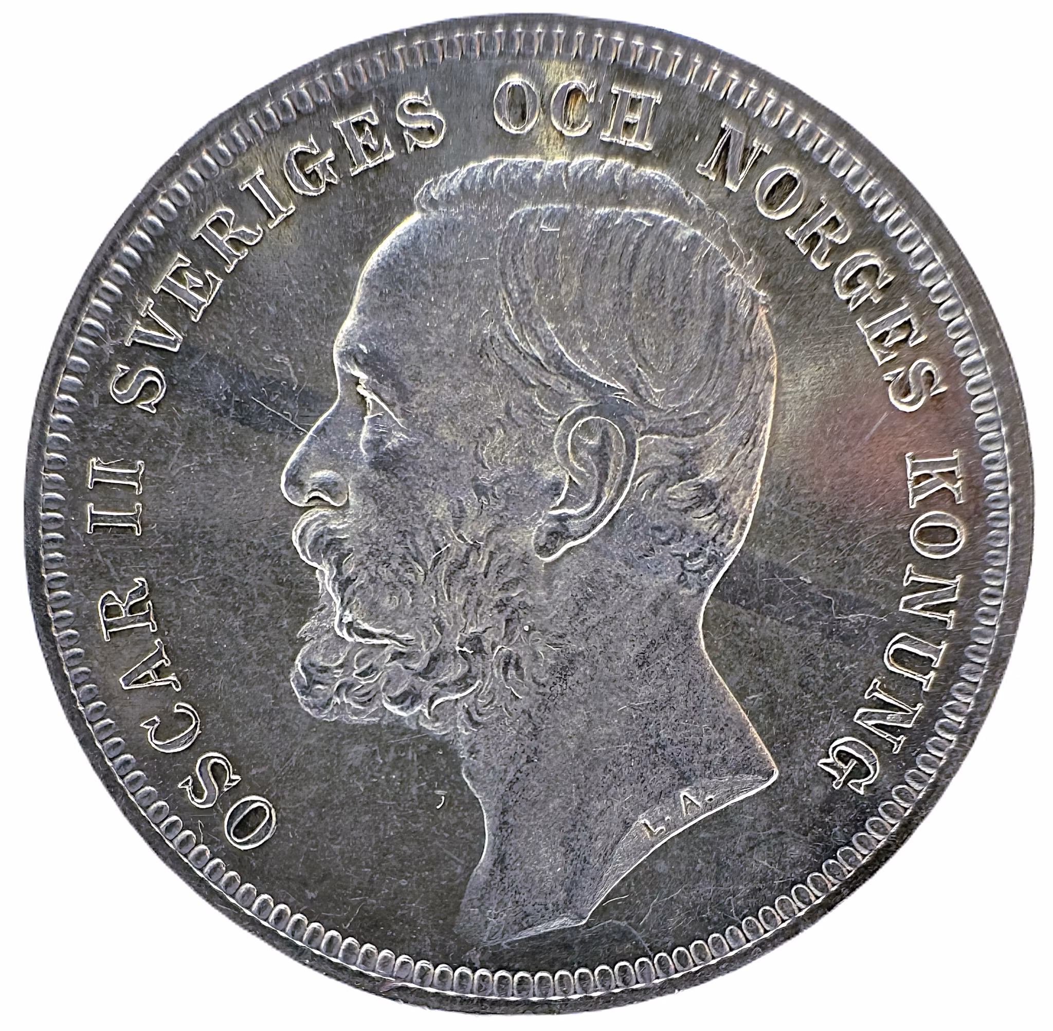 Oskar II - 1 Krona 1897 med ompunsad 7:a - tidigare olistad variant - Mycket vackert exemplar