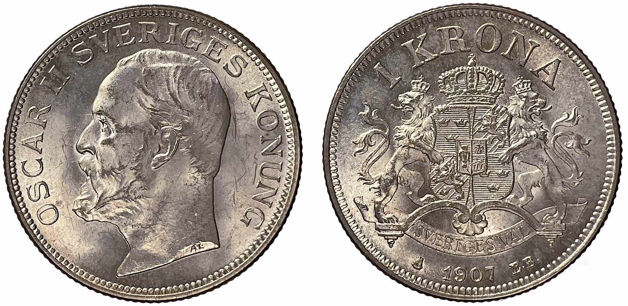 Oskar II, 1 Krona 1907 - Vackert exemplar Produkten är tyvärr slut i lager. :( Oskar II, 1 Krona 1907 - Vackert exemplarKvalitet god 01+, SMB 58