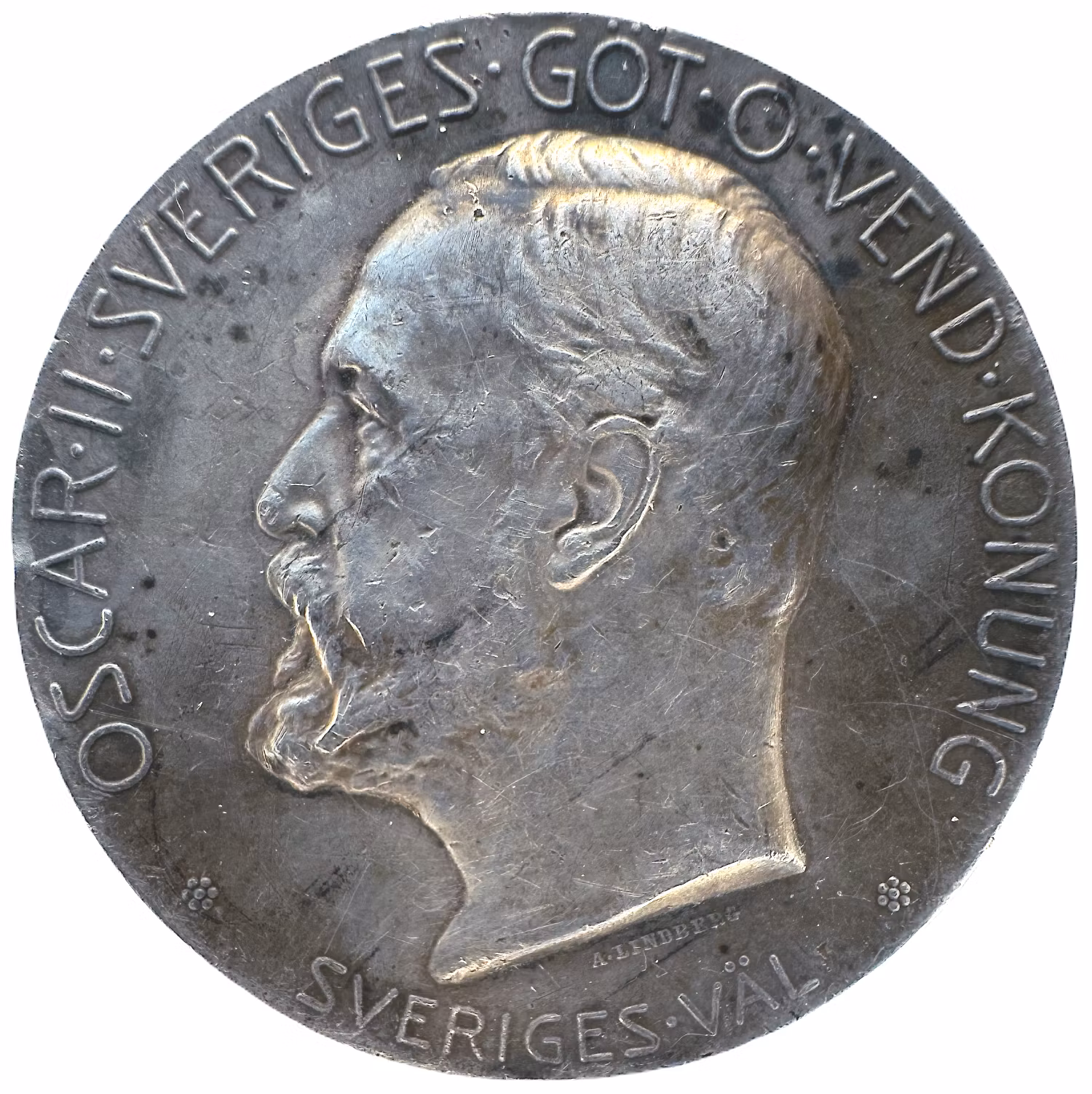 Oskar II - Konst och industriutställningen i Norrköping 1906 av Adolf Lindberg 0 kr 1 500 kr Oskar II - Konst och industriutställningen i Norrköping 1906 av Adolf LindbergKvalitet 1+, Av Adolf Lindberg, silver 50.61g, 45mm
