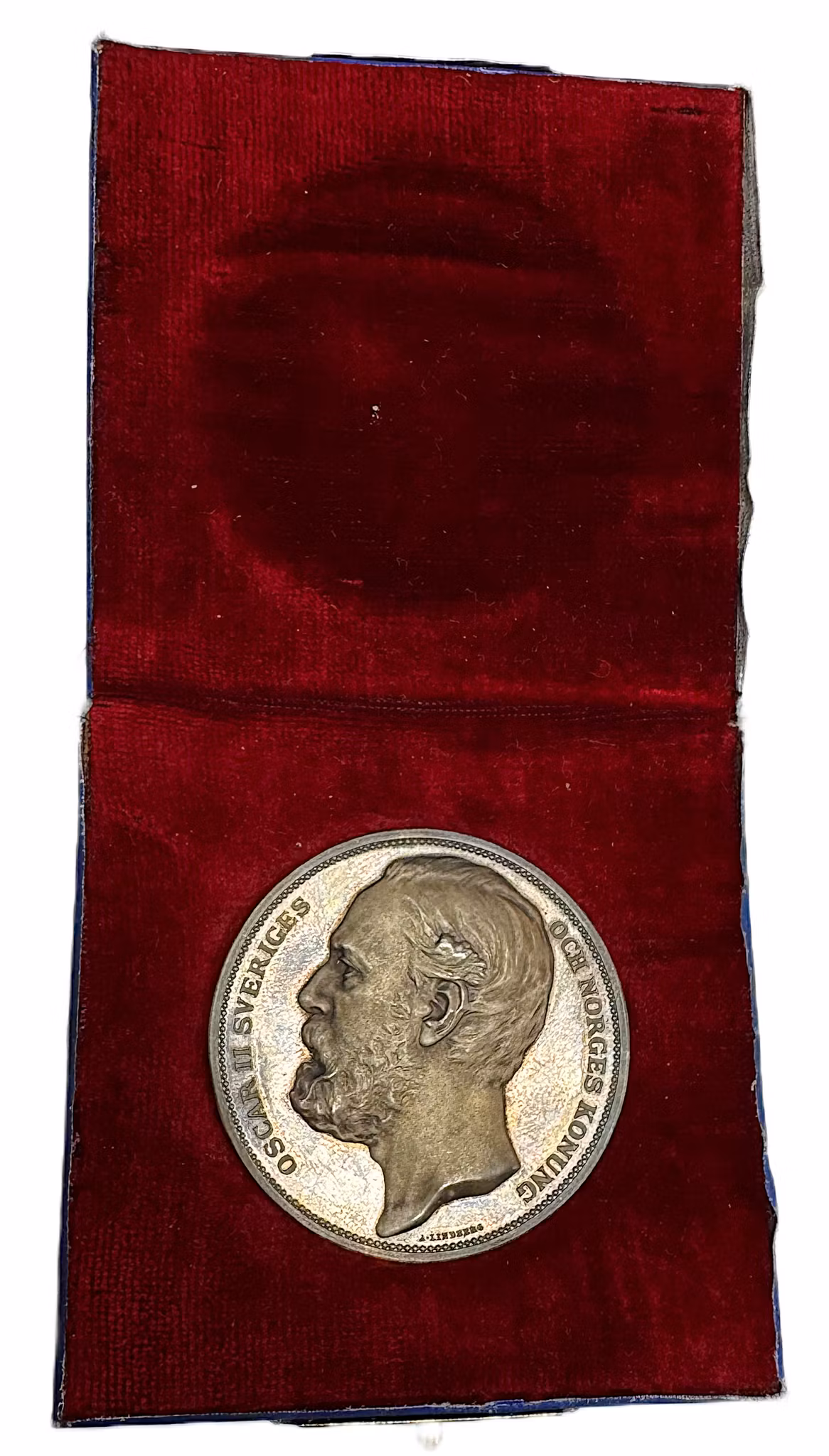 Oskar II, Svenska lantbruksmötet 1886 - Mycket vackert silverexemplar av Adolf Lindberg - Utdelad till J. H. Palme i originaletui