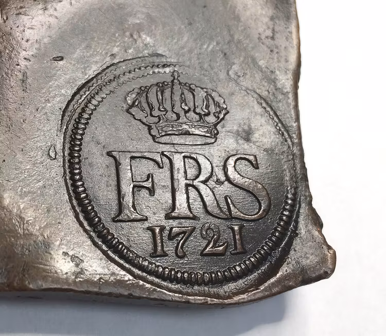 Fredrik I - Plåtmynt 2 Daler SM 1721 - Osedvanligt välbevarat exemplar