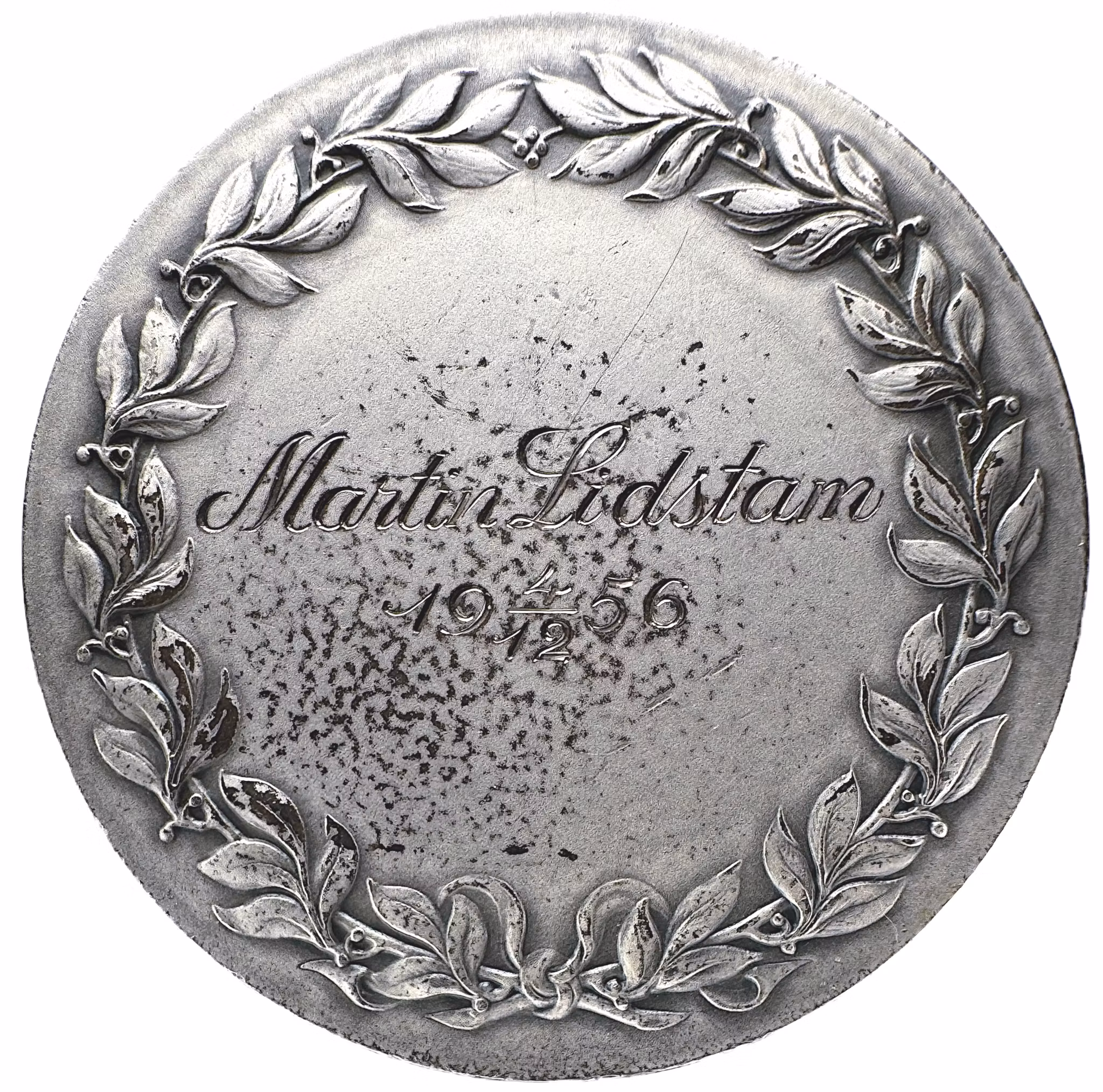 Inom en lagerkrans återfinns mottagarens namn: "Martin Lidstam 4/12 1956"