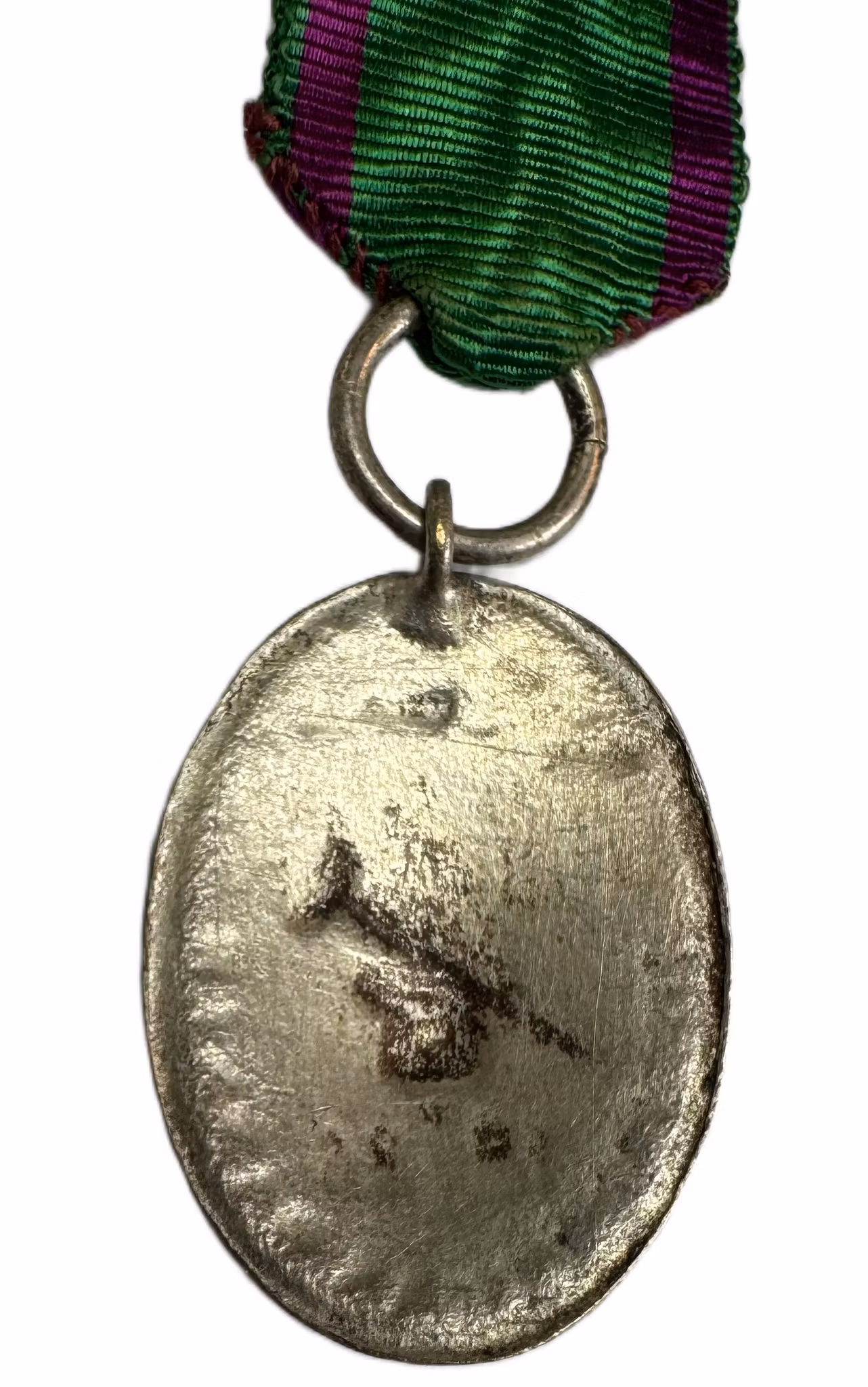 Ensidig brakteatpräglad penning av silver. 2.5g (med band), 18x24mm, kvalitet 01, SKM 135b (Sveriges kungliga medaljer av Delzanno 2024), Hildebrand 107. Sällskapet stiftades i Stockholm till minne av prins Karls (XV) födelse den 3 maj 1826 och hade till ändamål att främst lämna vård åt fattiga barn, samt i övrigt hjälpa nödlidande personer i Stockholm. Penningen var avsedd att bäras av sällskapets ledamöter i grönt band med bruna kanter vid sammankomsterna.