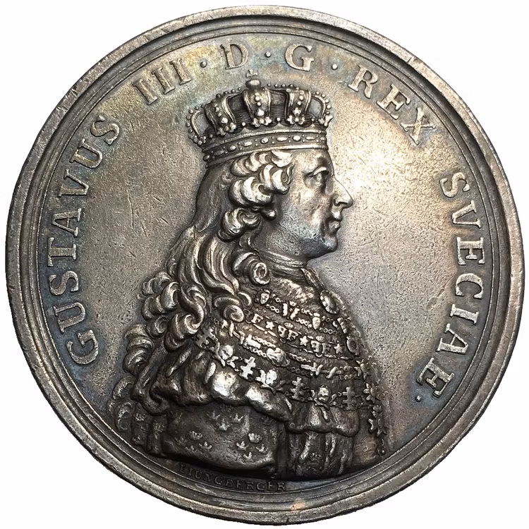 Sverige, Gustav III 1771 - 1792, Silvermedalj till konungens kröning 1772 av Liungberger
