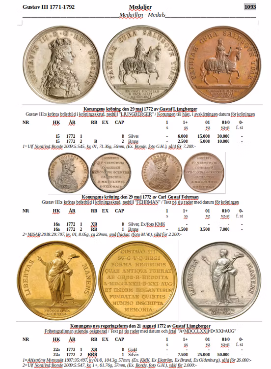 Sverige, Gustav III - KONUNGENS KRÖNING 1772 - Vackert exemplar
