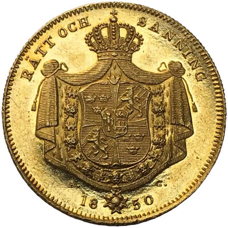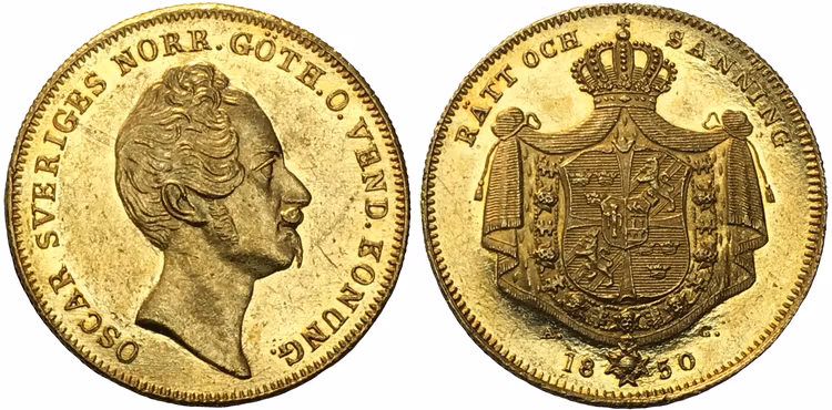Sverige, Oskar I - 4 Dukater 1850 - Ett praktfullt guldmynt i vacker kvalitet