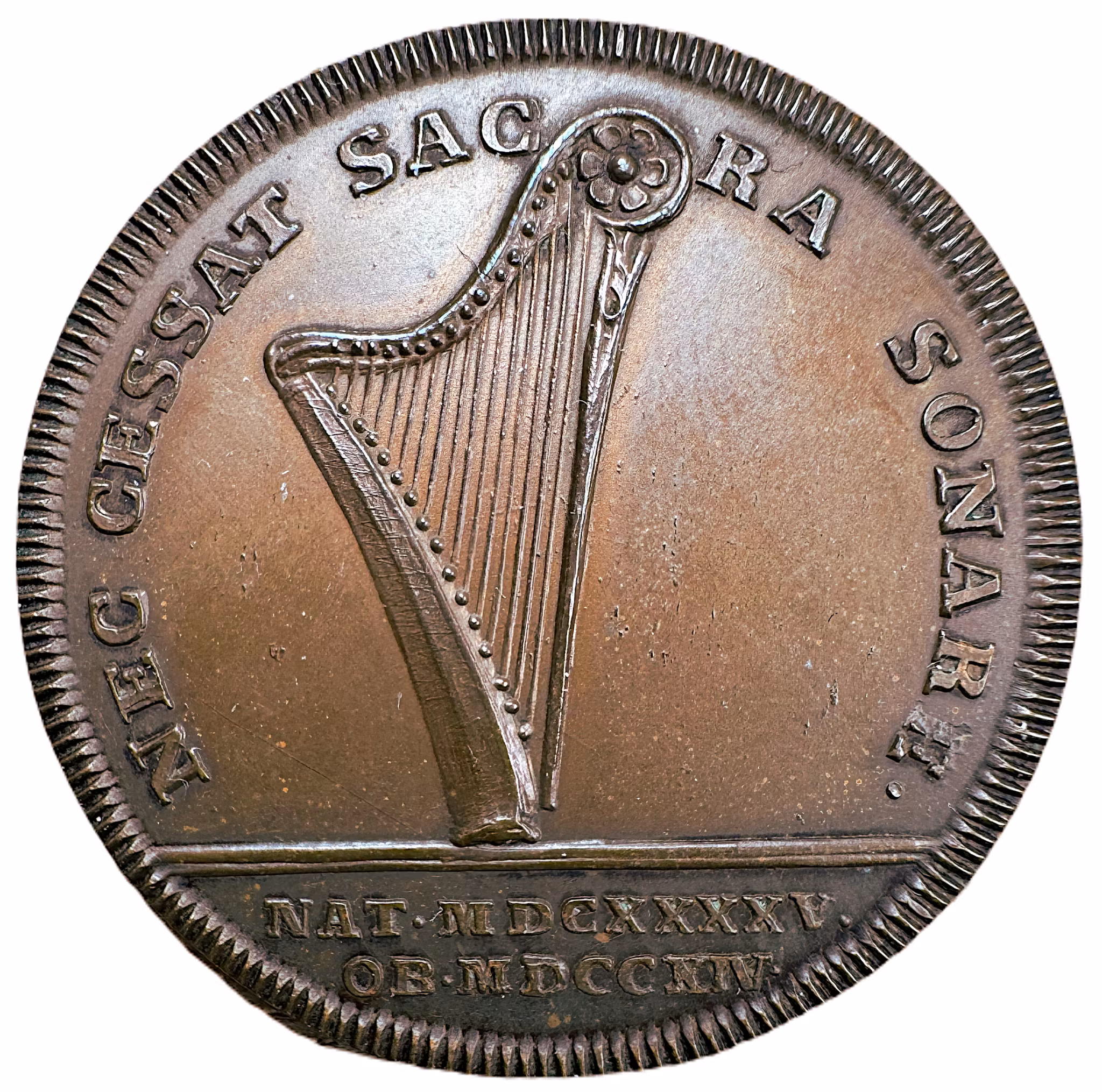 Till minne av ärkebiskopen av Uppsala, Haquin Spegel. Åtsida: Porträtt av ärkebiskopen åt höger. Frånsida: Davids harpa. Bronsmedalj slagen av Svenska akademien 1793, av C.G. Fehrmann, 32 mm; 15.01g. Hildebrand S. 82 . Ett bra och välpräglat exemplar, kvalitet 01