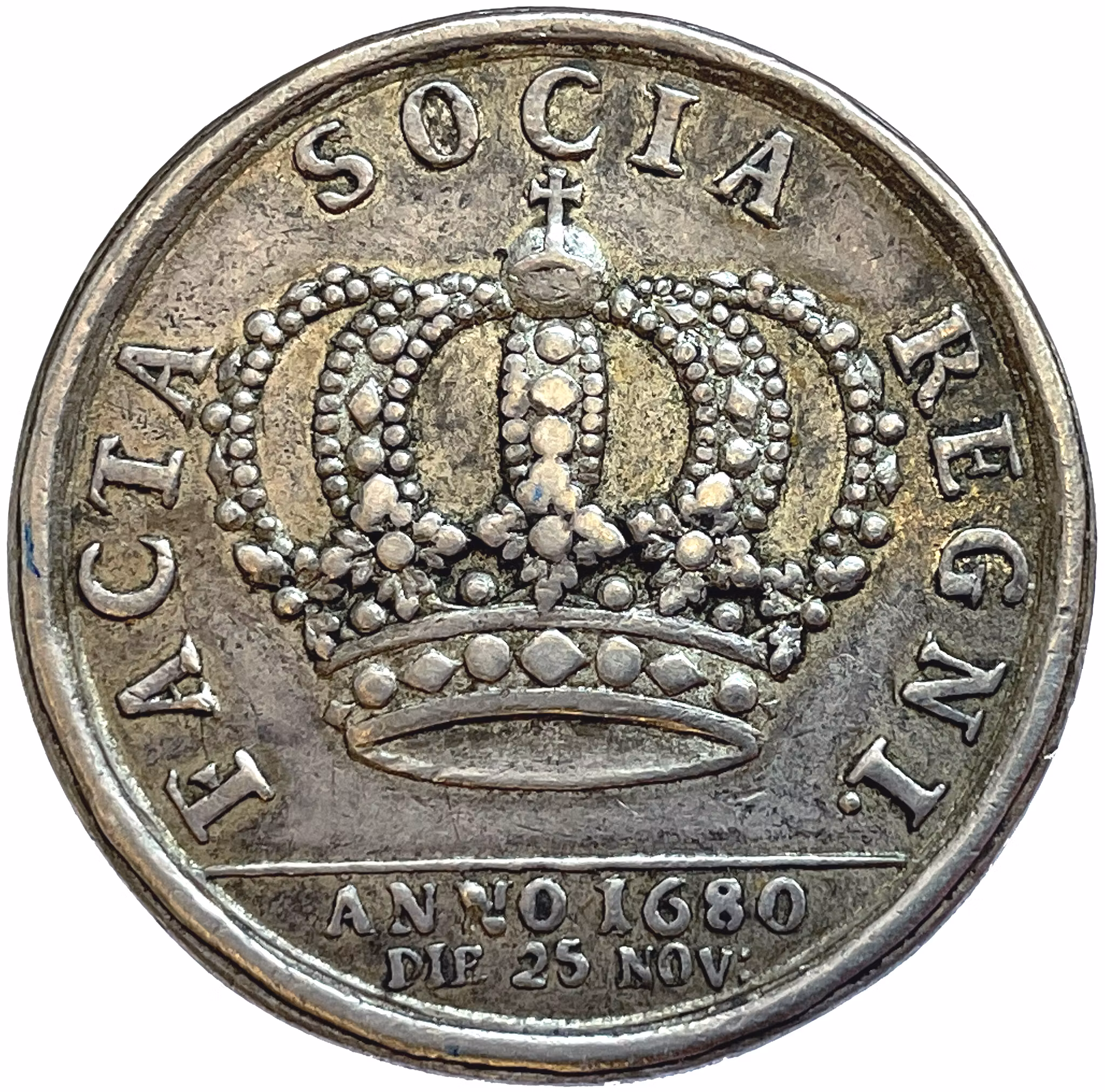 Silvermedalj även brukad som kastpenning, ett charmigt och väl cirkulerat exemplar med viss lyster. Kvalitet ca 1+, 10.82g, 31mm, Hildebrand 8, KK 27, Ex. MISAB auktion 7:1231